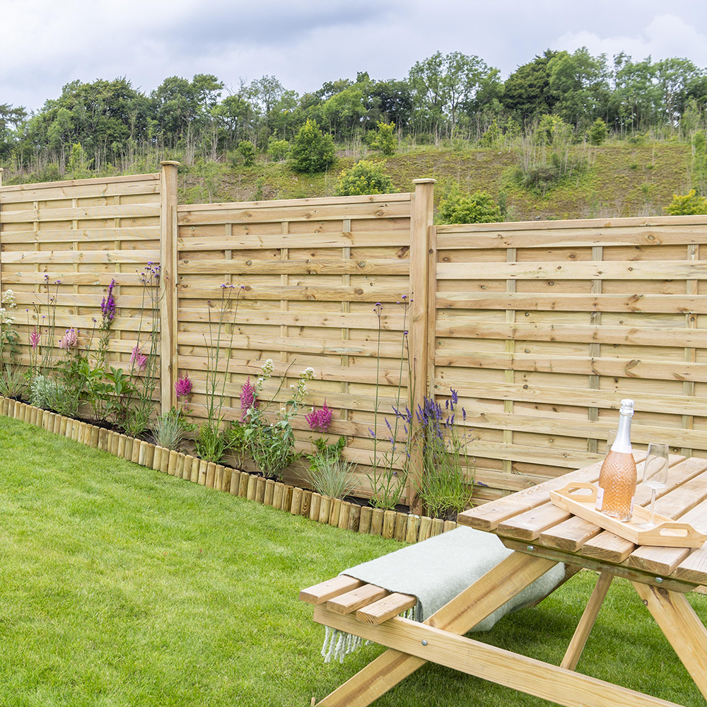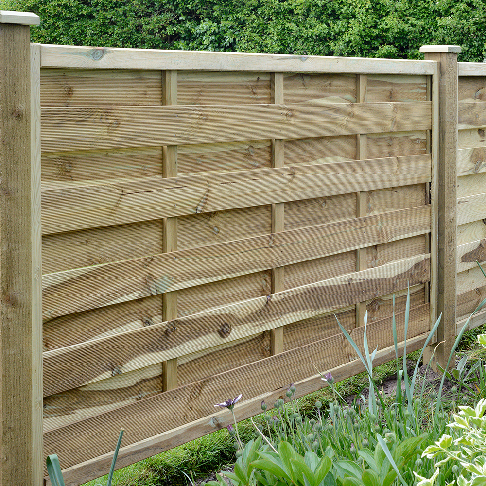 The Elite Esprit Panel offers a simplistic design with high levels of privacy. The strong horizontal slats are planed, rounded and grooved and are secured into a rebated frame. This square top panel delivers a contemporary look and is pressure treated to protect the timber for years to come.